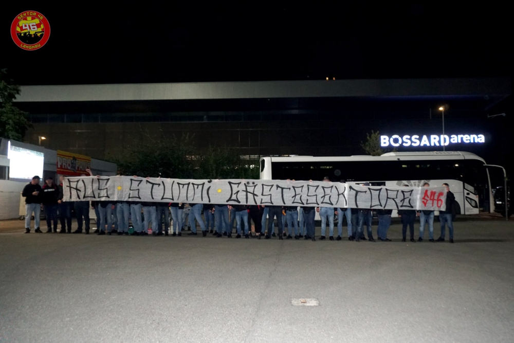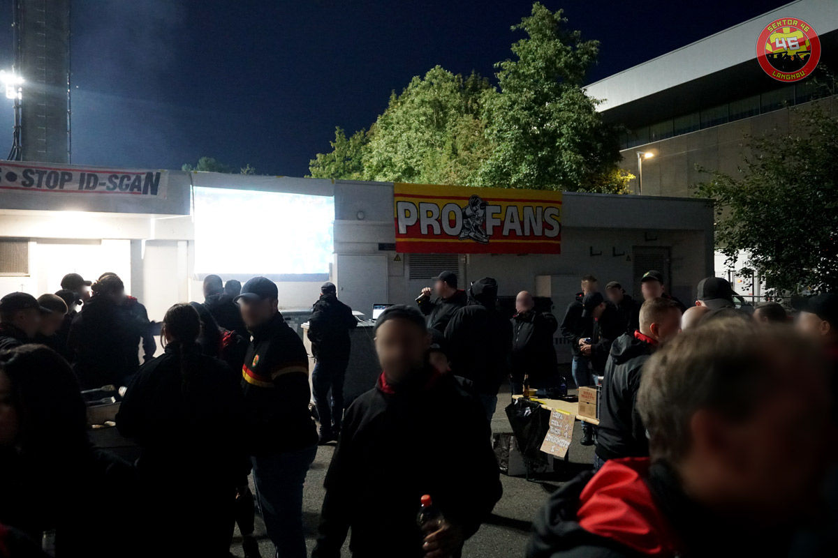Seit mehreren Jahren besteht in Zug für Gästefans die Pflicht, beim Einlass die ID scannen zu lassen. Die Probleme damit sind hinlänglich bekannt (Ungleichbehandlung von Gästefans, Vorverurteilung und fragwürdige Datenhaltung durch Private, etc.). Der Nutzen höchstens fragwürdig. Um ein Zeichen gegen das ID-Scanning zu setzen, reisten rund 50 Personen aus dem Sektor 46 Langnau nach Zug und protestierten vor dem Stadion gegen die problematische Ungleichbehandlung der Gästefans und forderten vehement der sofortige Stopp der fragwürdigen ID-Praxis in Zug. Während das Spiel auf Leinwand und Laptop mit Bratwurst und Bier verfolgt wurde, zeigten wir gemeinsam mit der Herti-Nordkurve ein Spruchband in Richtung Polizei und Justiz: Lieber Stimmig und Emotione aus stummi Gästesektore.